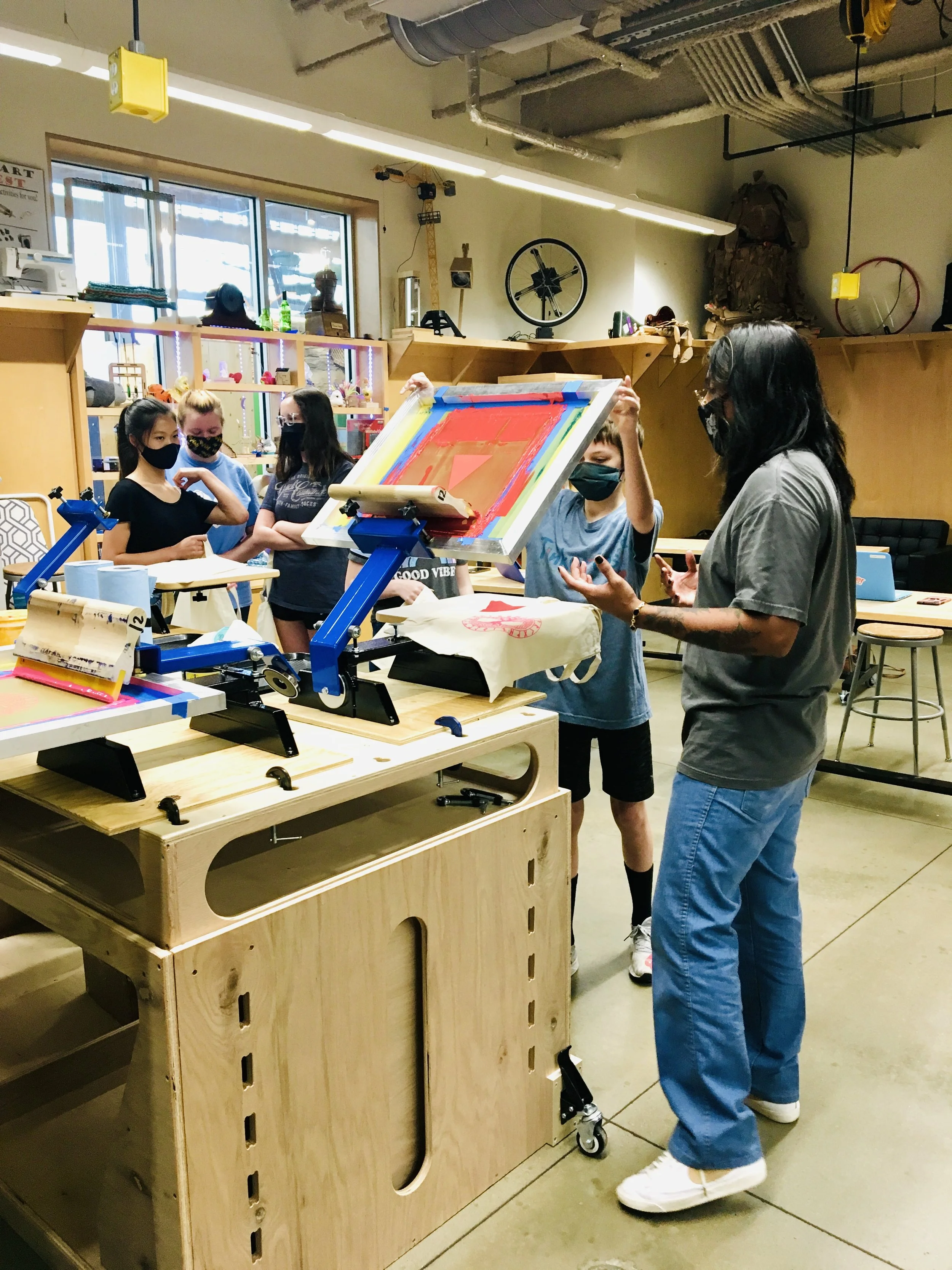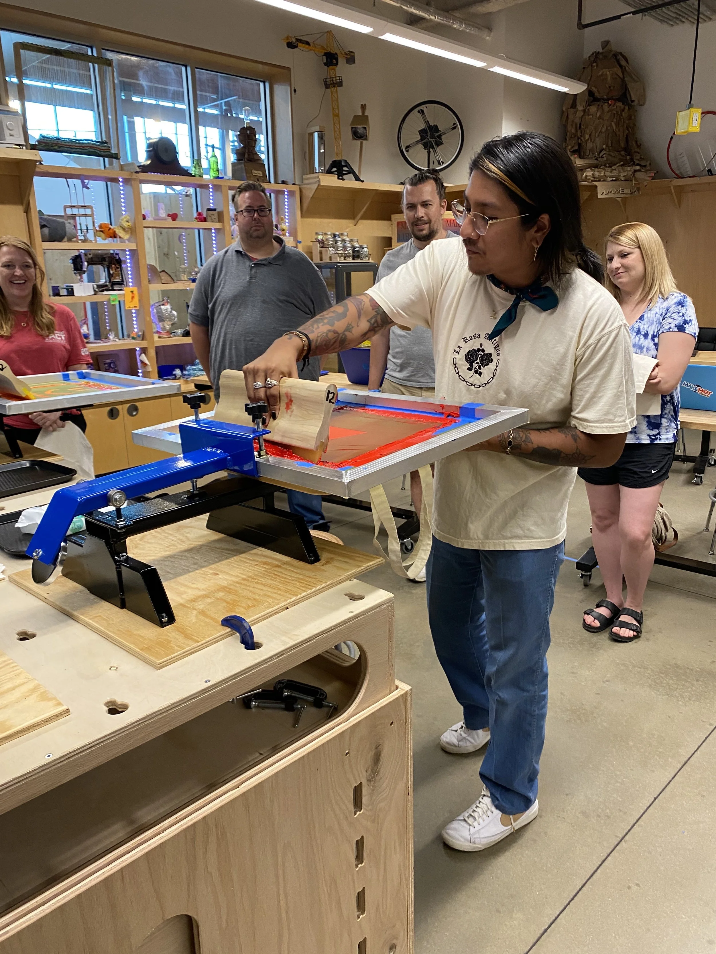 La Rosa Collective proudly partnered with the Scott Family Amazeum in bringing 2 weeks of creative programming for the community of NWA. We provided a blueprint of concept for the Amazeum, accessible curriculum for all ages & the facilitation of multiple workshops. Our goal was to provided a resource and awareness to the artistry and industry of screen printing; at scale. The Amazeum is now equipped with a full screen printing studio and curriculum for the community to use. Read more about our time there below! A special thank you to the Scott Family Amazeum.